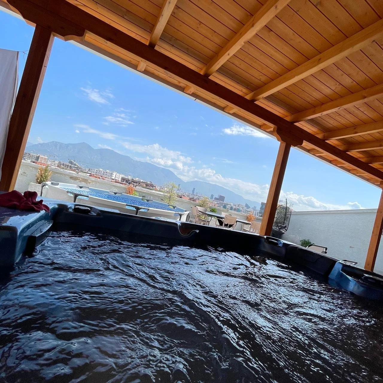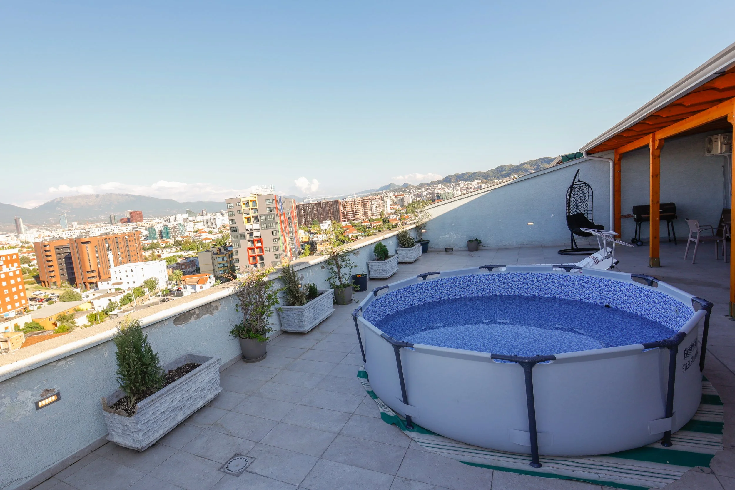 Skyline Rooftop Apartment with Hot Tub & Pool — Astir, Tirana.